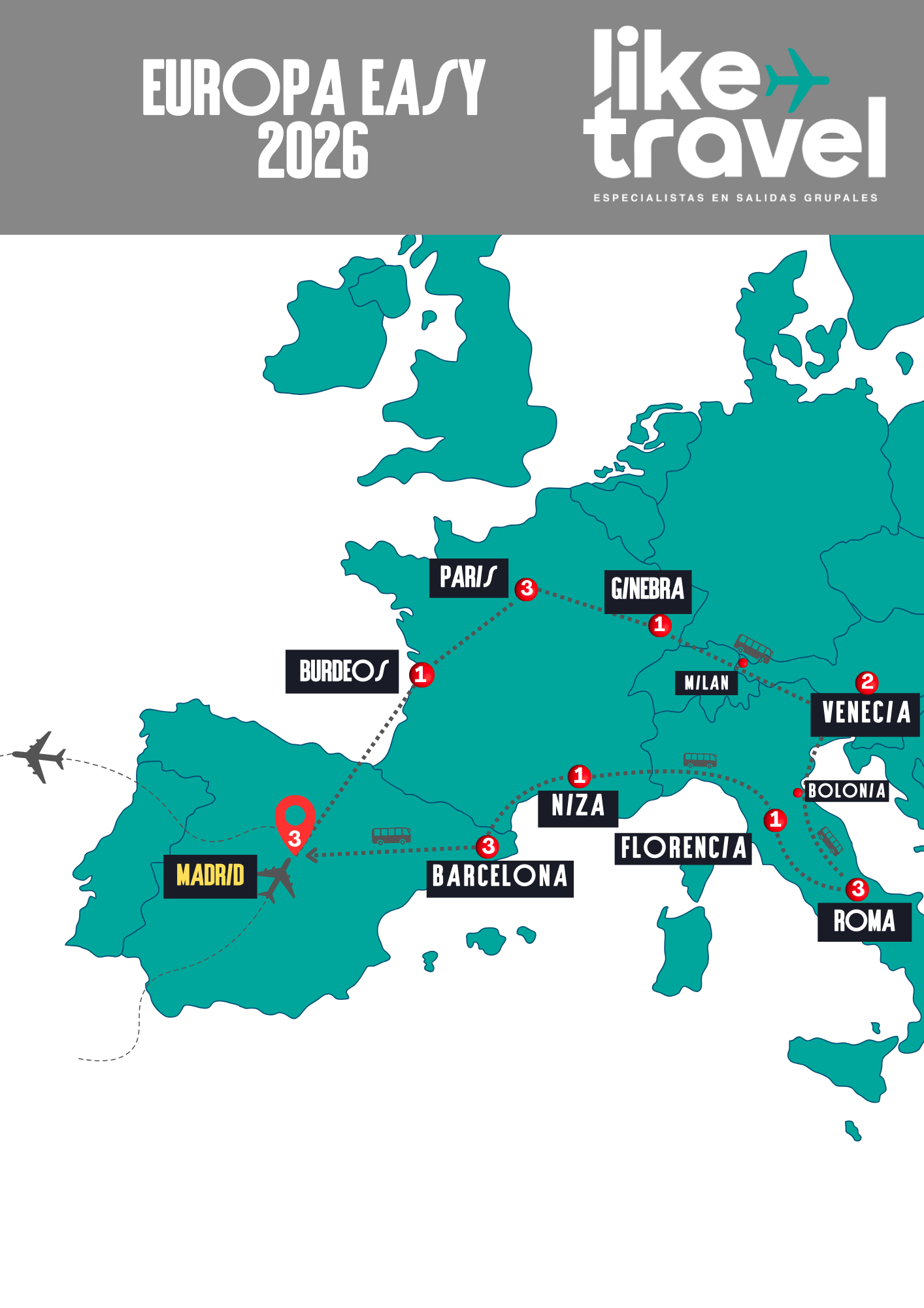 Terminamos en Barcelona, ciudad llena de color, arte y energía mediterránea. Un itinerario equilibrado, completo y pensado para que disfrutes Europa a tu ritmo, sin dejar de vivir lo esencial.