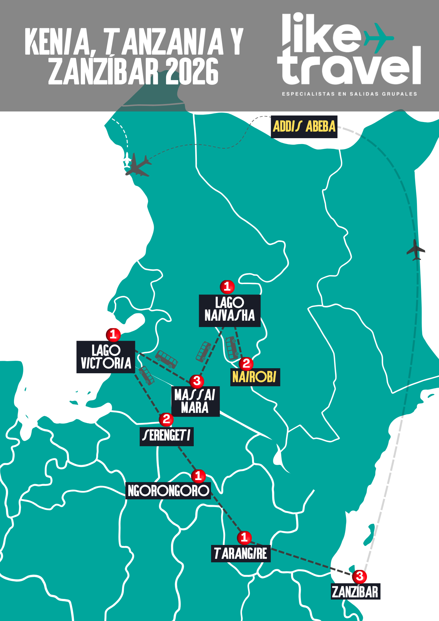 Desayuno. Por la madrugada volaremos desde Zanzíbar hacia Addis Abeba (capital de Etiopía), donde haremos nuestra conexión para continuar hacia Argentina. A mitad de mañana volamos hacia Ezeiza. Al llegar a Buenos Aires, fin de nuestros servicios.